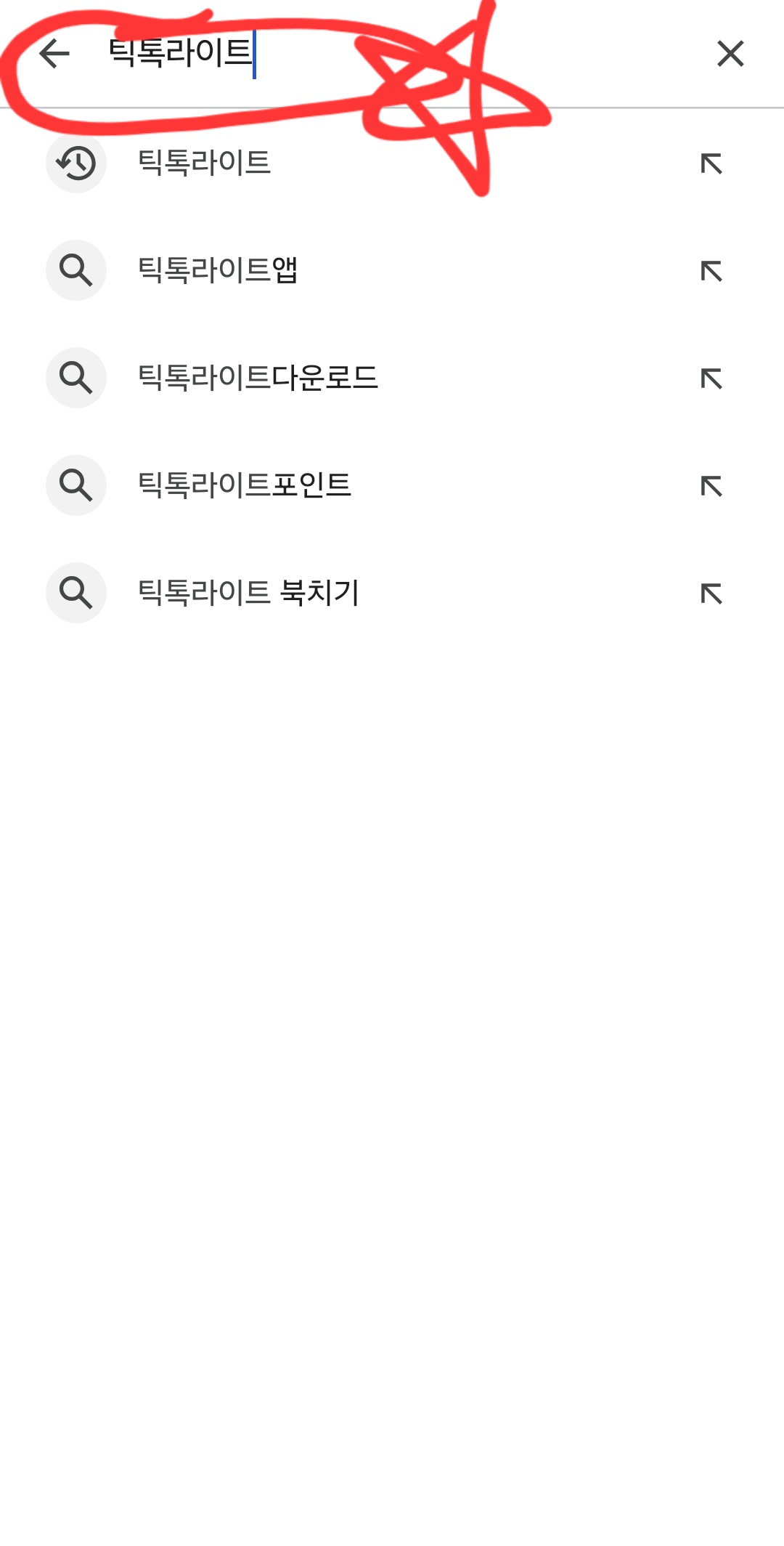 이렇게 차례대로 누르시면 검색창에 '틱톡 라이트' 라고 쓰여질 거예요.