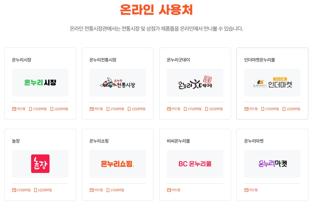 - 사용처: 전국 전통시장, 상점가, 일부 소상공인 가맹점